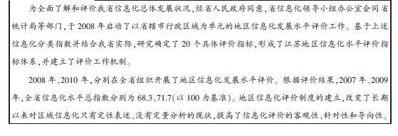 ——信息化發展環境不斷優化。信息化管理體制逐步健全,地方工作機構和職能得到加強。信息化法制建設取得積極進展,《江蘇省軟件產業促進條例》已于2007年7月1日施行,《江蘇省信息化條例》于2012年1月1日起施行,先后出臺了進一步加快國民經濟和社會信息化的意見、電子政務建設指導意見、企業信息化與電子商務實施意見、實施農業信息服務工程意見、省級機關電子政務項目管理暫行辦法、社區信息化工作的指導意見等一批法規政策,在地區信息化、社區信息化、電子政務、信息安全和兩化融合示范等方面建立了一批地方標準、應用規范和評價指標體系。信息化知識和技能普及日益廣泛。