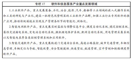 大力發展軟件產品,加快推動計算機輔助設計和輔助制造(CAD&CAM)、產品數據管理(PDM)、產品生命周期管理(PLM)、制造執行管理系統(MES)、過程控制系統(PCS)、數字控制系統、企業資源管理(ERP)、供應鏈管理(SCM)等關鍵工業軟件的研發應用,著力推進行業應用軟件、嵌入式軟件、游戲、動漫等優勢軟件發展,加快發展信息安全軟件、高端信息技術服務工具和平臺軟件、新興網絡應用軟件,支持物聯網服務器端應用軟件、中間件、數據挖掘和分析軟件、傳輸層和終端嵌入式軟件等研發與應用。以三網融合、物聯網、通信網絡升級換代等為契機,推動基礎軟件、工業軟件、行業應用軟件和移動互聯軟件的研發和產業化。開展行業應用軟件示范推廣,強化軟件研發與應用互動,支持發展具有自主知識產權的軟件產品。