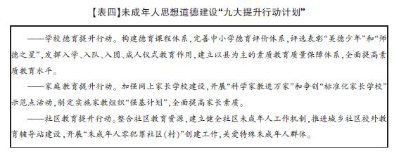 2.加強(qiáng)德育教育。推動(dòng)社會(huì)主義核心價(jià)值體系融入國(guó)民教育、進(jìn)入大中小學(xué)教材,加強(qiáng)學(xué)生的思想品德、公民意識(shí)教育。注重養(yǎng)成教育和道德實(shí)踐,引導(dǎo)學(xué)生積極參與社會(huì)公益活動(dòng)。加強(qiáng)和改進(jìn)大學(xué)生思想政治理論課教育教學(xué)工作,增強(qiáng)吸引力感染力。深入實(shí)施未成年人思想道德建設(shè)“九大提升行動(dòng)計(jì)劃”,加快校外活動(dòng)陣地建設(shè),完善學(xué)校家庭社會(huì)“三結(jié)合”教育網(wǎng)絡(luò)。到2015年,力爭(zhēng)實(shí)現(xiàn)全省未成年人社會(huì)實(shí)踐基地和成長(zhǎng)指導(dǎo)中心縣(市)全覆蓋,建成鄉(xiāng)村學(xué)校少年宮2000個(gè)。