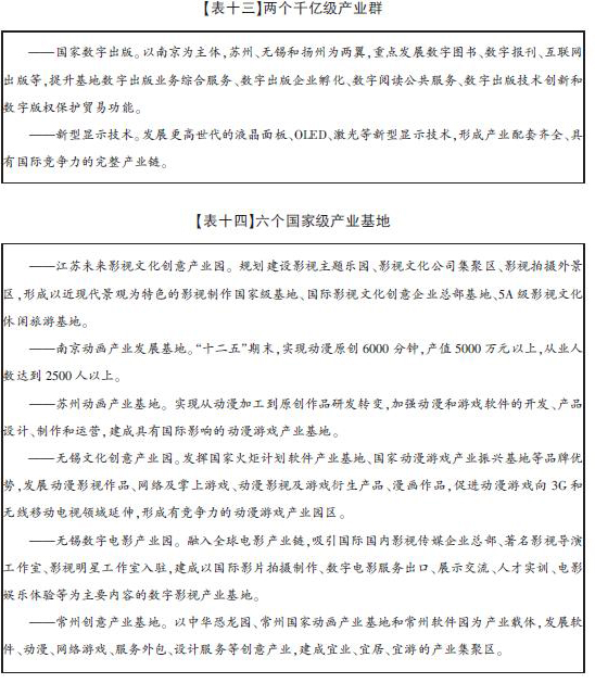 建設(shè)沿滬寧線新興文化產(chǎn)業(yè)帶。發(fā)揮沿滬寧線高校和科研院所密集的優(yōu)勢(shì),以數(shù)字出版、動(dòng)漫游戲、高科技文化制造業(yè)為重點(diǎn),以兩個(gè)千億級(jí)產(chǎn)業(yè)群和六個(gè)國(guó)家級(jí)基地為依托,加快形成沿滬寧線新興文化產(chǎn)業(yè)帶。