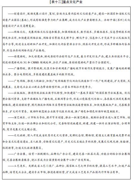 以體制機(jī)制創(chuàng)新和科技進(jìn)步為動(dòng)力,加快發(fā)展文化產(chǎn)業(yè),著力構(gòu)建現(xiàn)代文化產(chǎn)業(yè)體系,突出培育特色,突出龍頭帶動(dòng),突出集聚發(fā)展,使文化產(chǎn)業(yè)盡快成為江蘇的支柱產(chǎn)業(yè)。