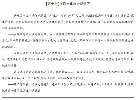 建設(shè)沿海海洋文化產(chǎn)業(yè)帶。整合開發(fā)連云港、鹽城、南通三市沿海獨(dú)特的海岸海灘資源,發(fā)掘沿海海洋文化資源稟賦,規(guī)劃整合區(qū)域文化資源,加快港口文化、漁業(yè)文化、海鹽文化、海上休閑項(xiàng)目開發(fā),打造沿海文化旅游新干線和海洋文化休閑產(chǎn)業(yè)帶。