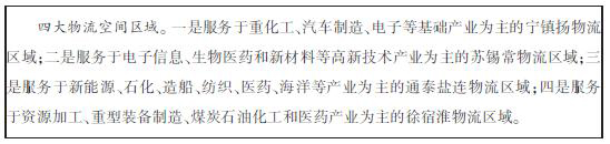 現(xiàn)代物流集聚區(qū)。構(gòu)建以沿江、沿海以及空港為重點的臨港物流集聚區(qū),該區(qū)域重點發(fā)揮全省海港、長江港口、空港的貨物集散和吞吐能力,發(fā)展“大進大出”的臨港物流業(yè);依托公路、鐵路等交通基礎(chǔ)設(shè)施和區(qū)位交通條件,在南京、無錫、常州、揚州、淮安等地建設(shè)綜合性物流集聚區(qū);依托工業(yè)布局特征,配套發(fā)展以為汽車、石化、醫(yī)藥、紡織、冶金等行業(yè)服務(wù)為主的專業(yè)性物流集聚區(qū);體現(xiàn)服務(wù)業(yè)對外開放特征,在開放型經(jīng)濟發(fā)展基礎(chǔ)較好的區(qū)域重點打造保稅物流集聚區(qū)。