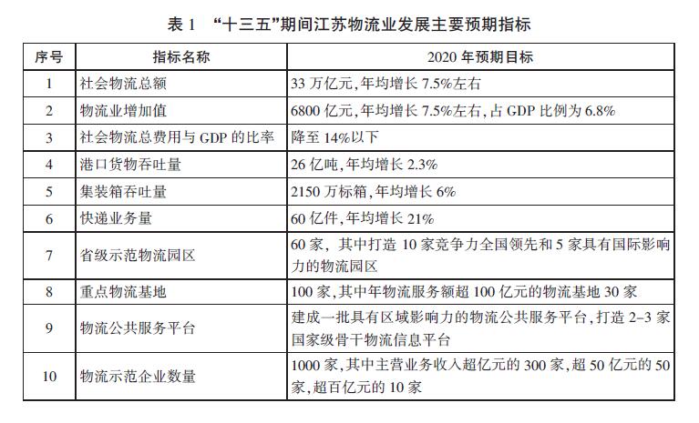 (三)發展目標。到2020年,基本建成布局科學、技術先進、智慧高效、綠色環保、安全有序的物流服務體系,努力把江蘇打造成現代物流強省、物流業創新發展的先導區和示范區。重點目標如下: