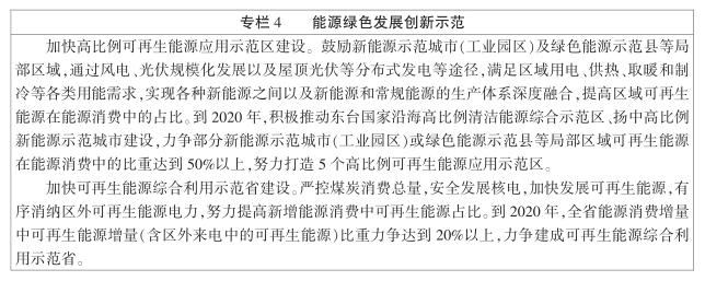 3.優化能源結構,推動能源行業減排。本規劃把綠色低碳轉型發展作為重大任務,從能源生產和消費兩個角度明確了結構優化目標要求。提出安全發展核電、加快發展風電、科學利用太陽能、擴大利用生物質能,力促一次能源生產“一升一降”,即省內非化石能源占比由39.7%提升到72.9%,煤炭產量由1919萬噸降低到700萬噸左右;提出聚焦天然氣和電能替代,力促一次能源消費“三增三減”,即天然氣利用由165億立方米增加到350億立方米,省內可再生能源由607萬噸標準煤增加到1200萬噸標準煤,區外來電凈受電量由649億千瓦時增加到1590億千瓦時,省內工業用煤、供熱用煤和省外購入焦炭逐步減少。