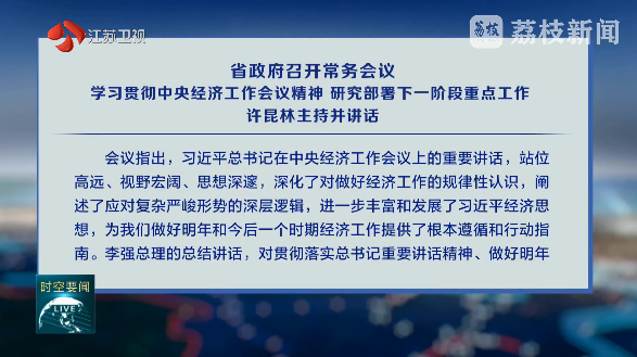 12月18日,省政府召開常務會議,學習貫徹中央經濟工作會議精神,聽取省政府涉企規章、行政規范性文件及政策文件清理情況和2024年質量強省工作情況匯報,審議《關于深化“江蘇工匠”培育工程加強高技能人才隊伍建設的若干措施》《江蘇省失業保險規定(修正草案)》,研究部署下一階段重點工作。省長許昆林主持會議并講話。查看全文 >